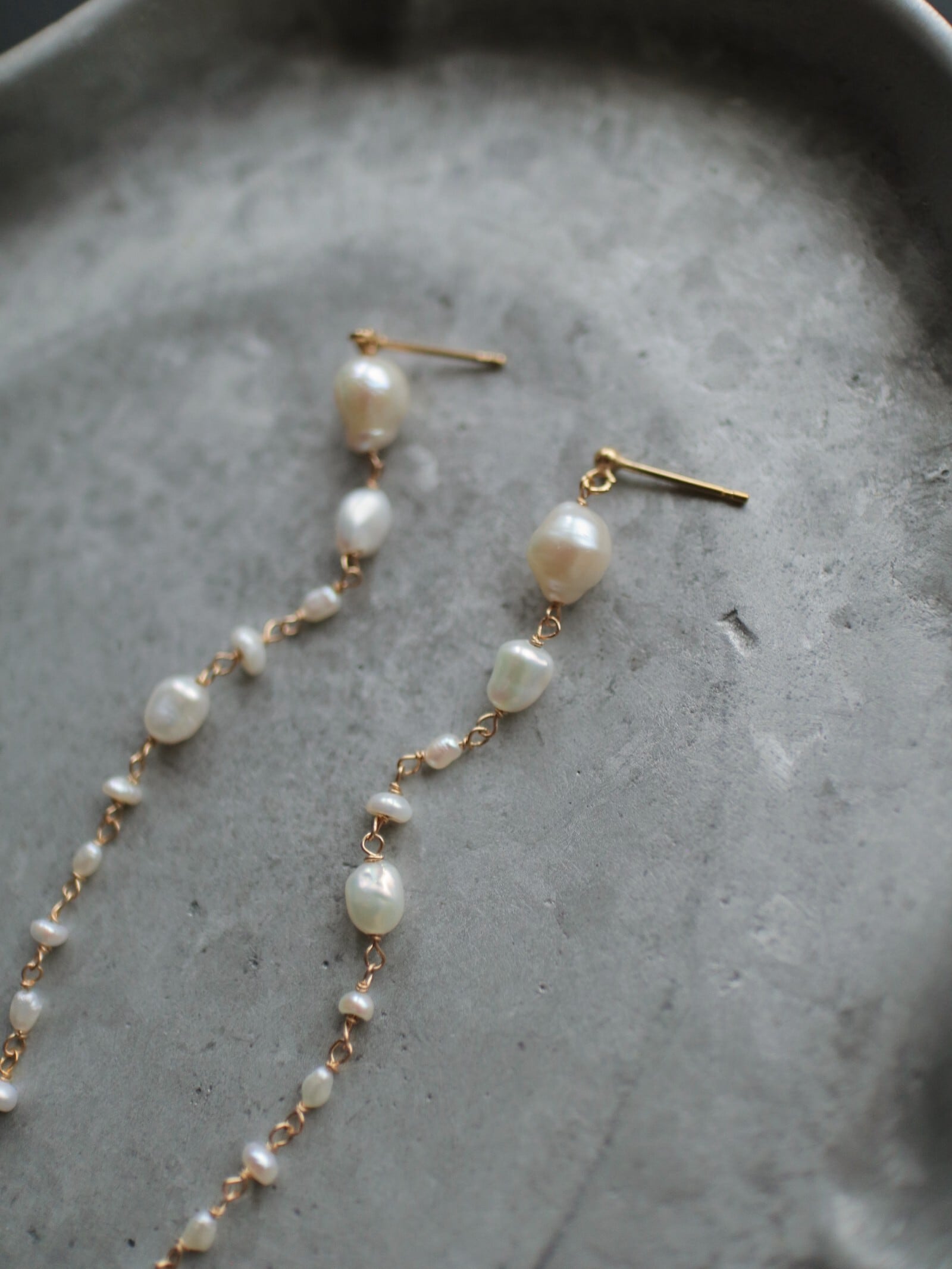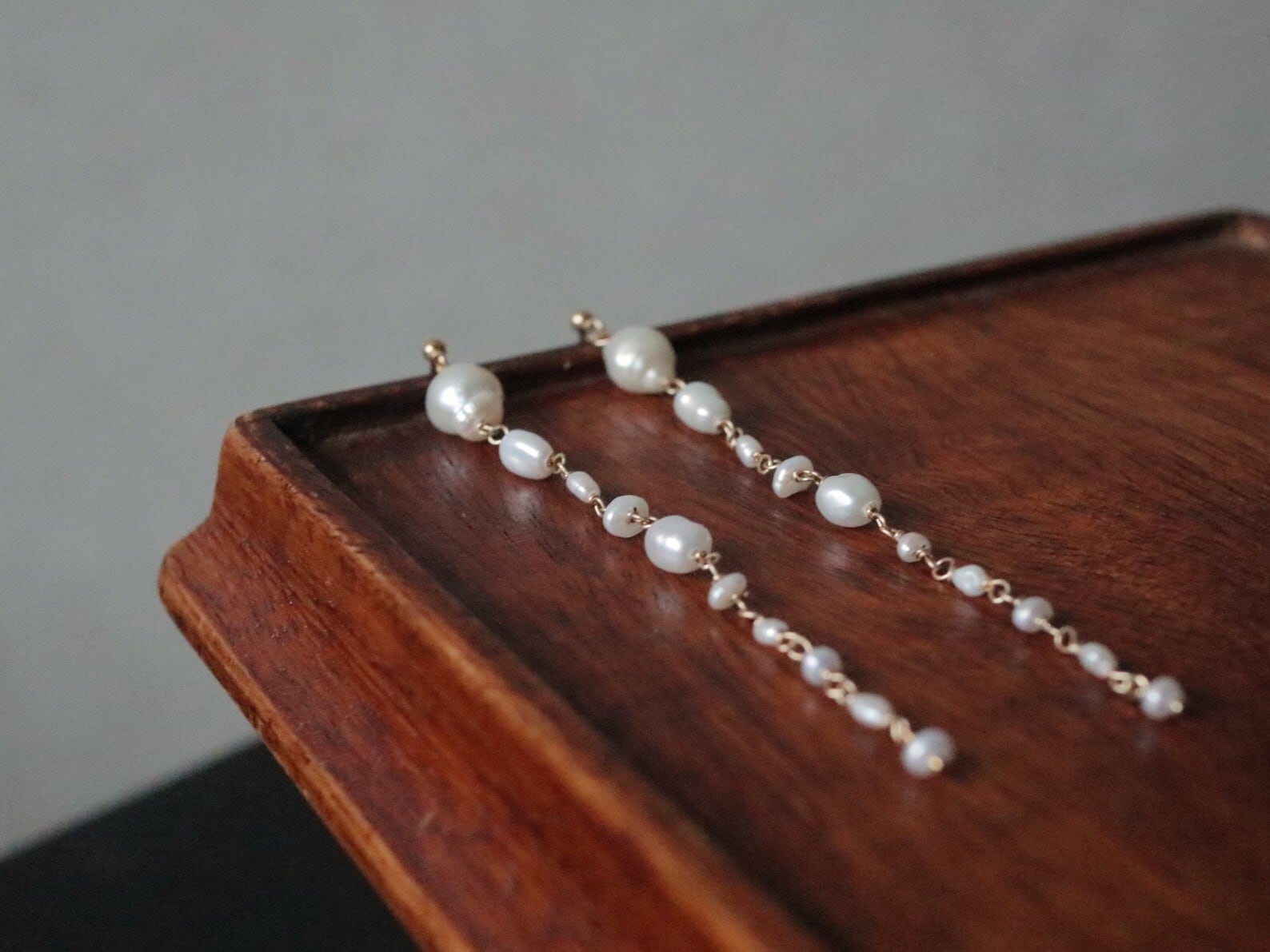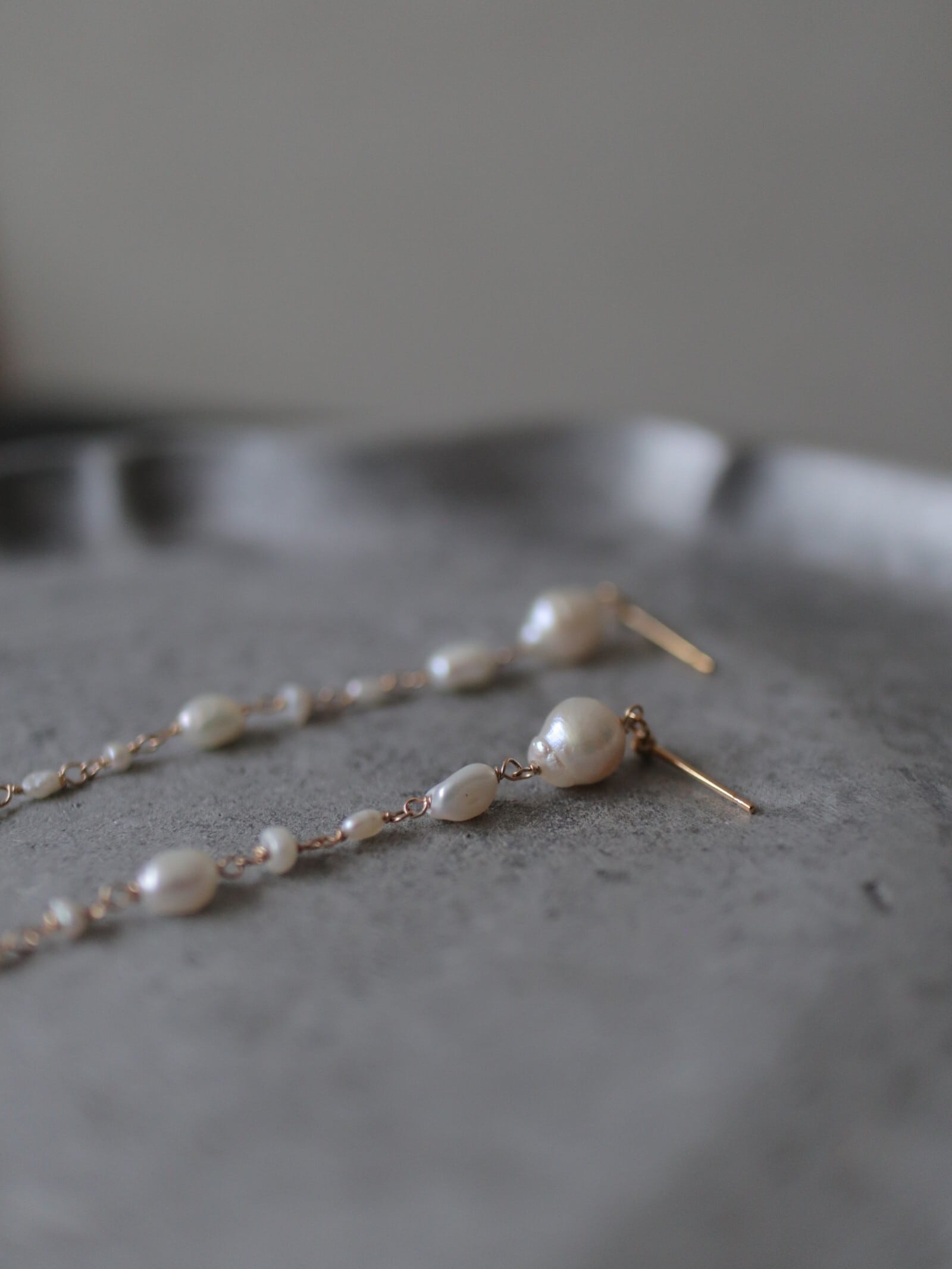 綺麗なラウンドパールにはないユーモアラスさと装いを邪魔せず引き立てる、そのさりげないパールの存在感。多様なシーンで楽しんでいただけます。