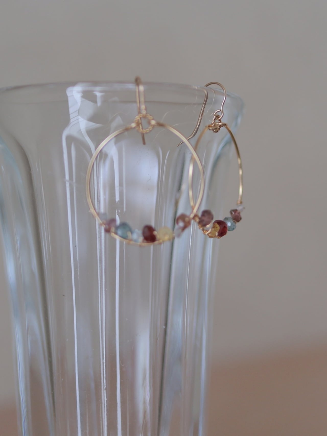 ♢様々なカラーやカットの天然クォーツを、まるで宝石箱のように散りばめたピアス。