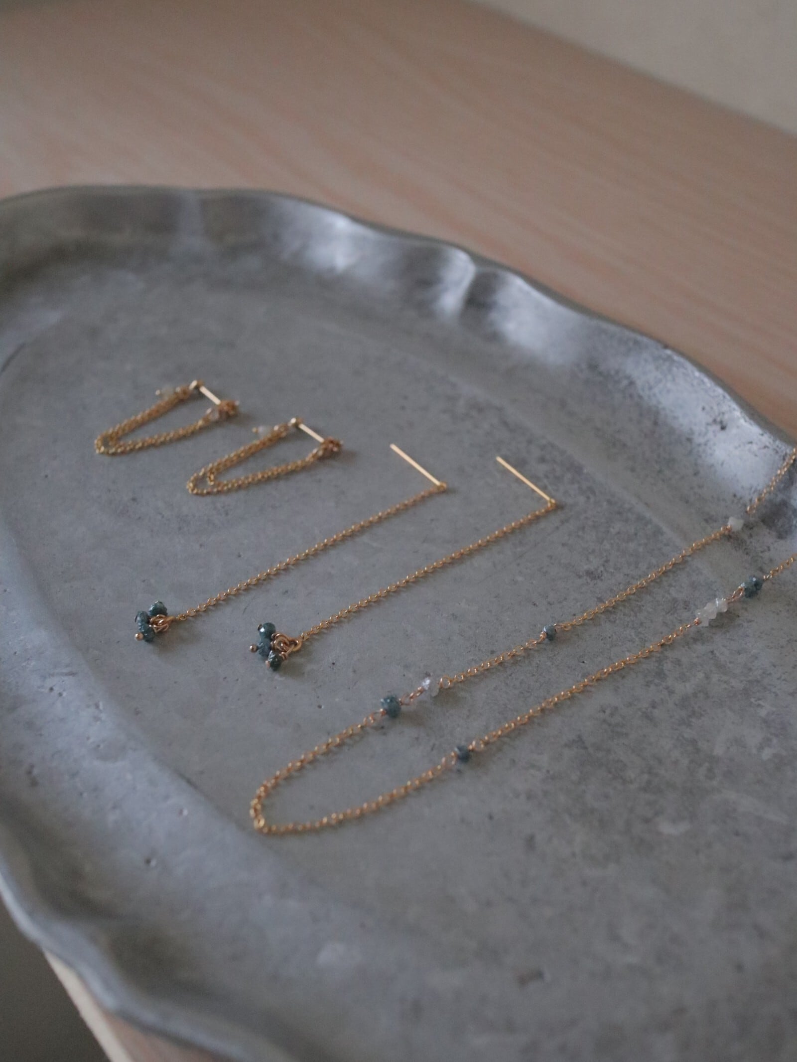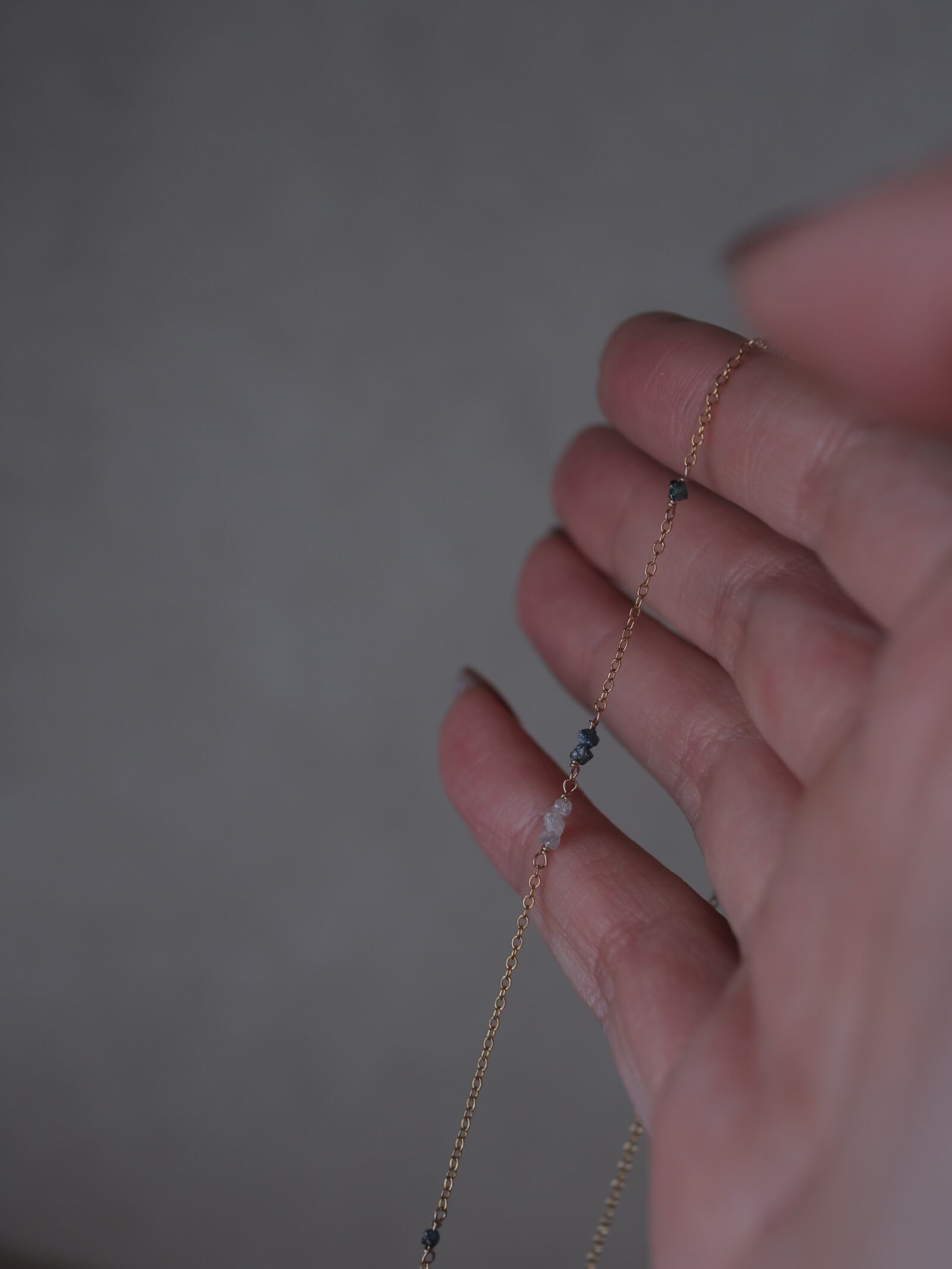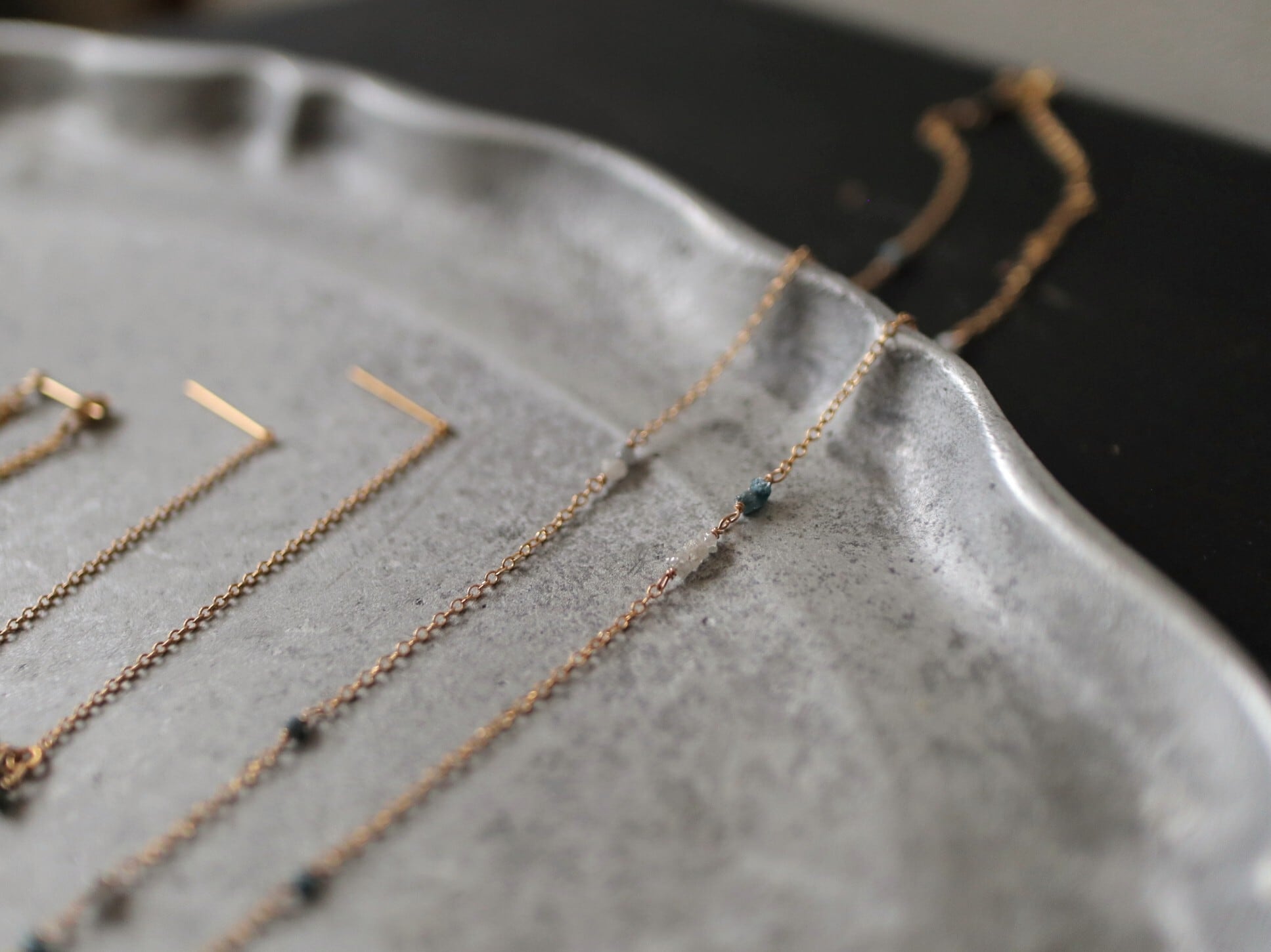 控えめな輝きのダイヤモンドの原石はすっと自然に肌に馴染み、ささやかに寄り添う輝きです。