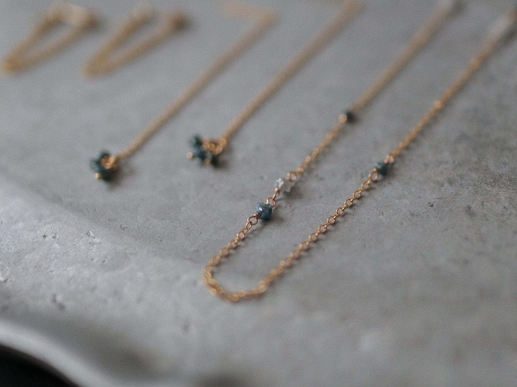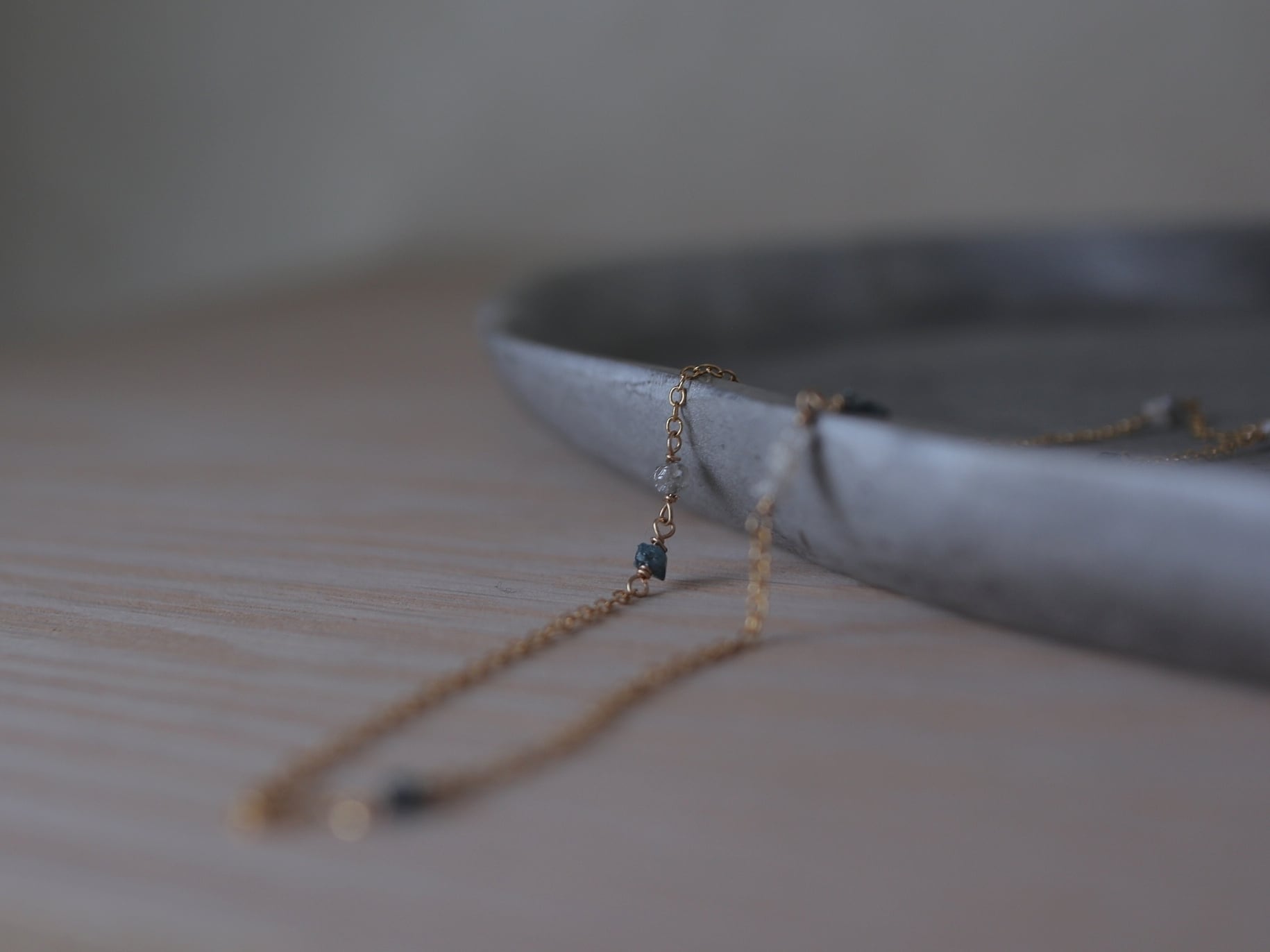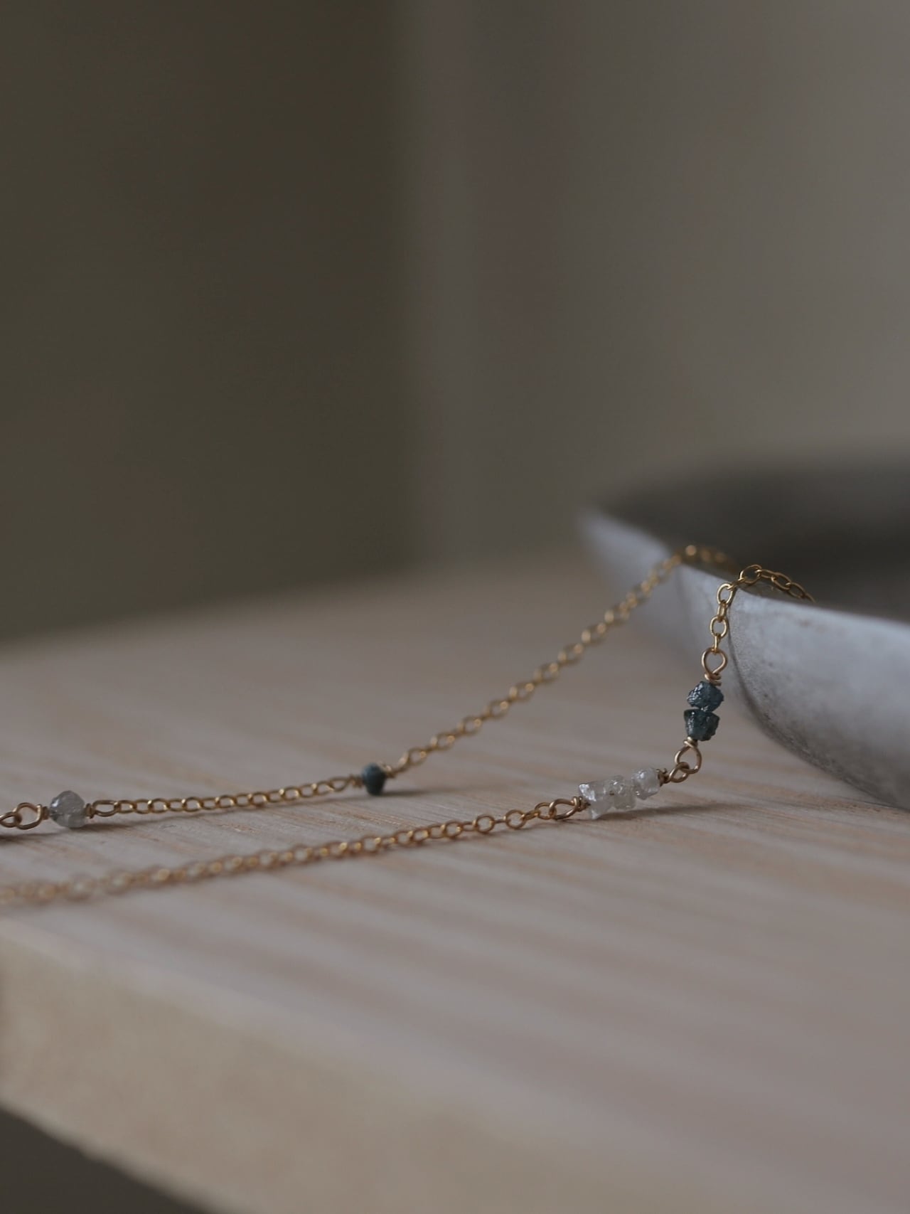 控えめな輝きのダイヤモンドの原石はすっと自然に肌に馴染み、ささやかに寄り添う輝きです。