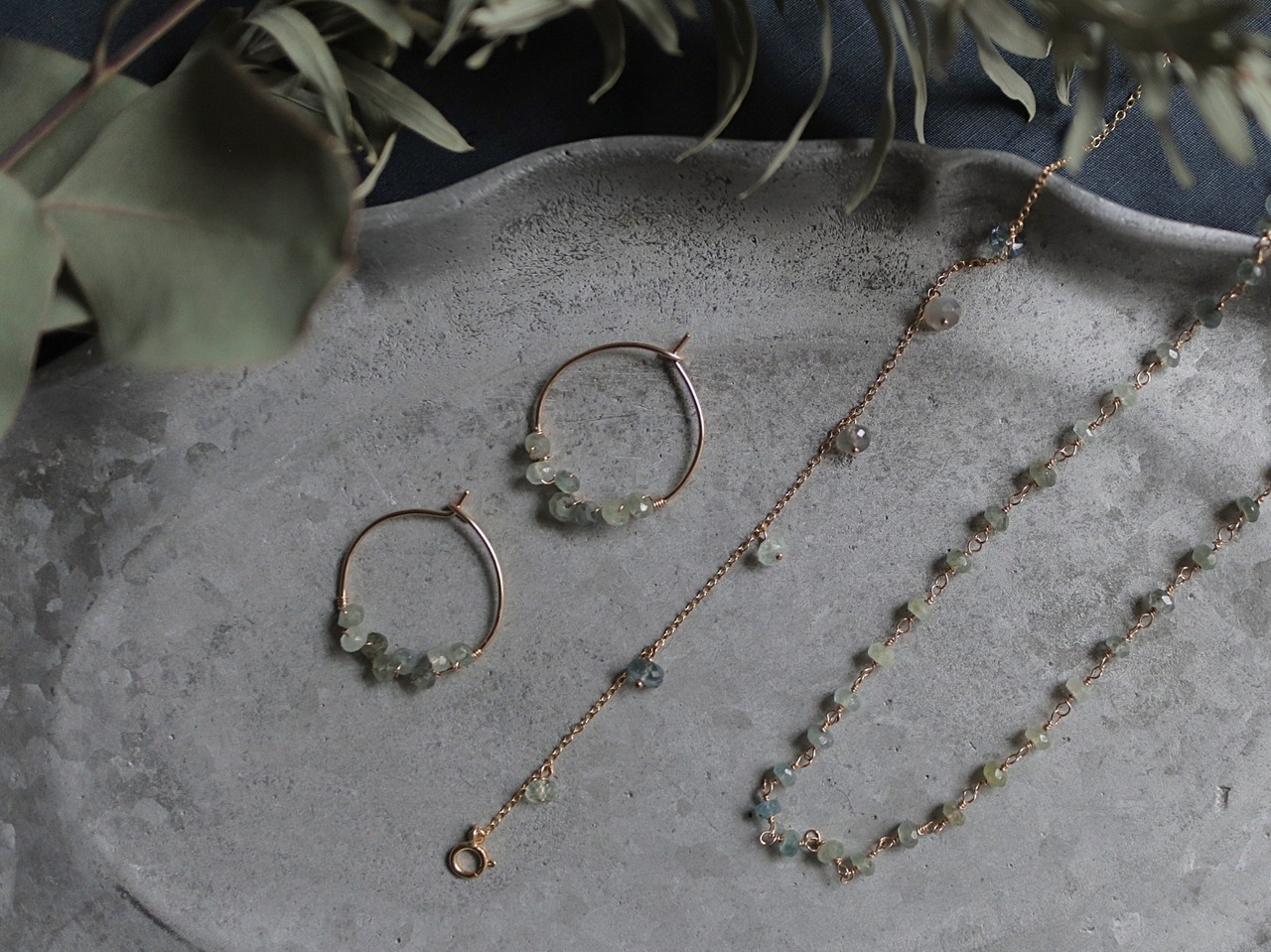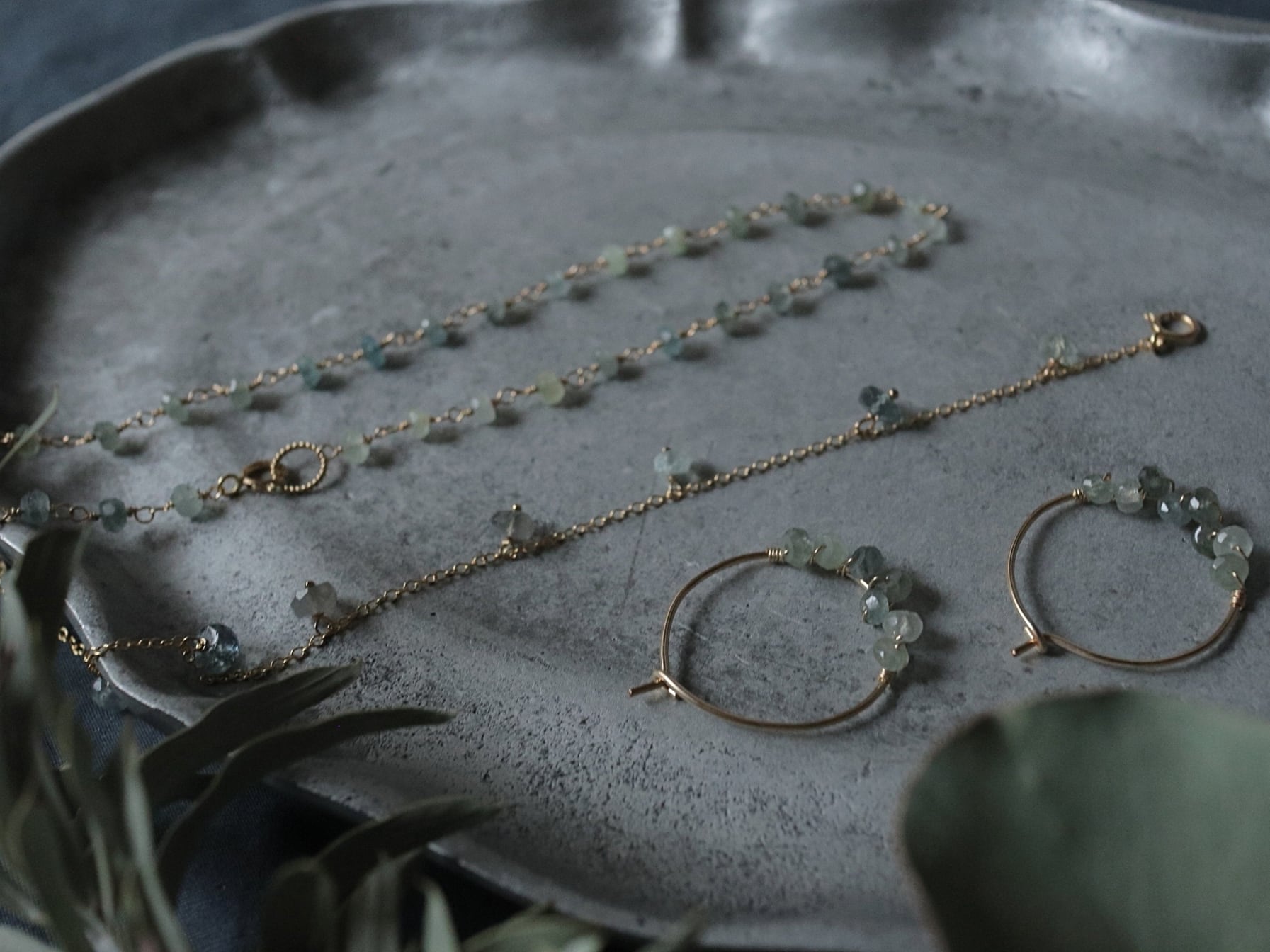 ♢通常の鮮やかなアクアマリンよりも、肌に馴染むお色味が特徴の希少なモスアクアマリン。