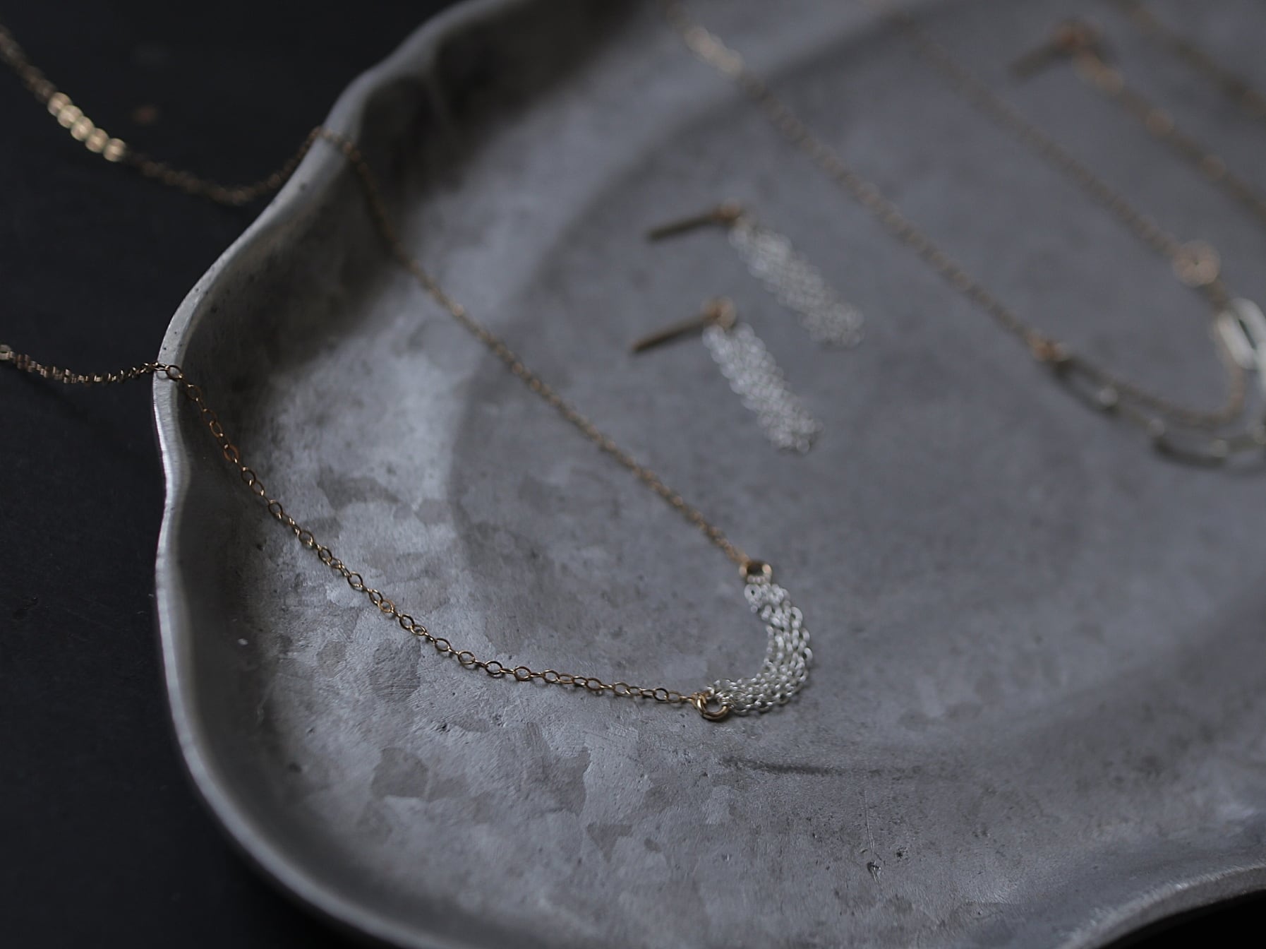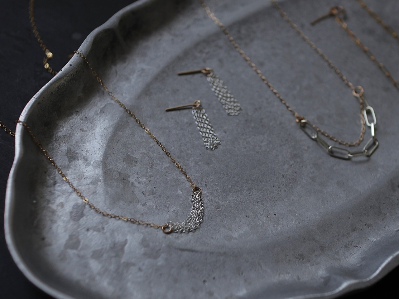 メッキとは違い14金をメッキの100倍も厚い層で圧着しており、メッキのように剥がれてくることもなく長くお使いいただけます。