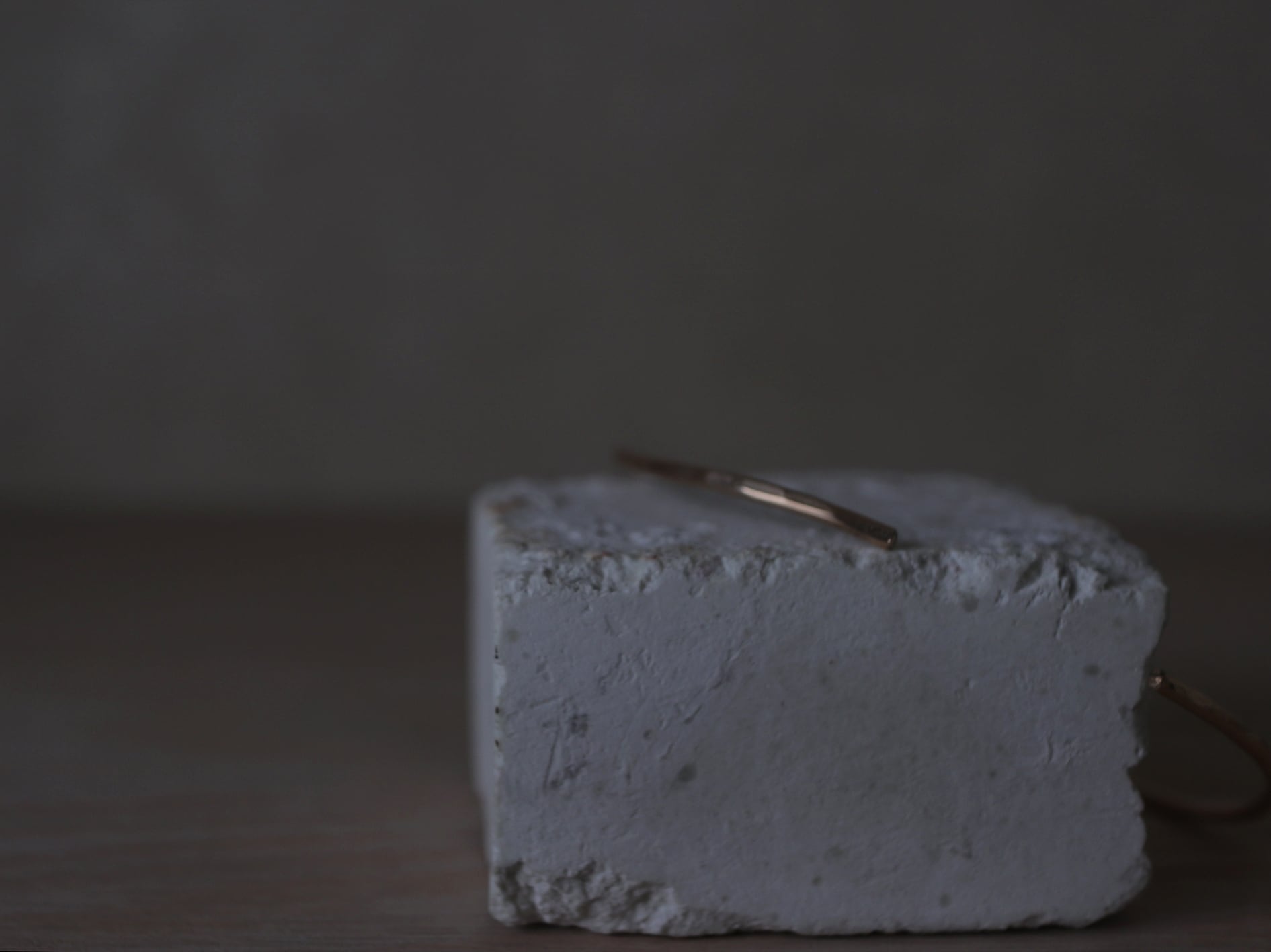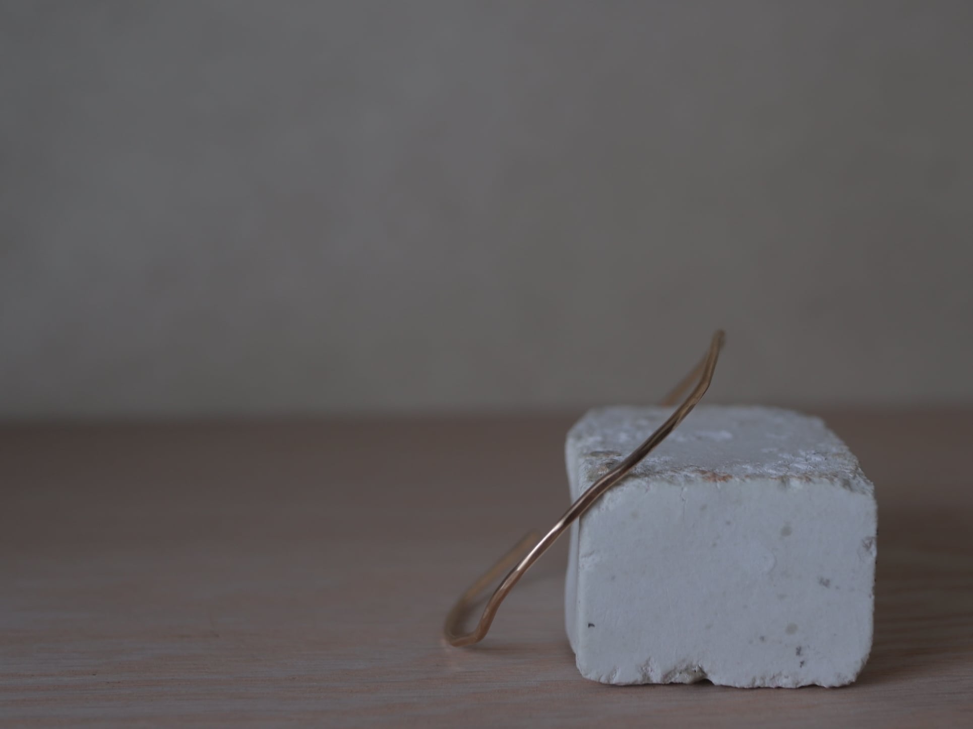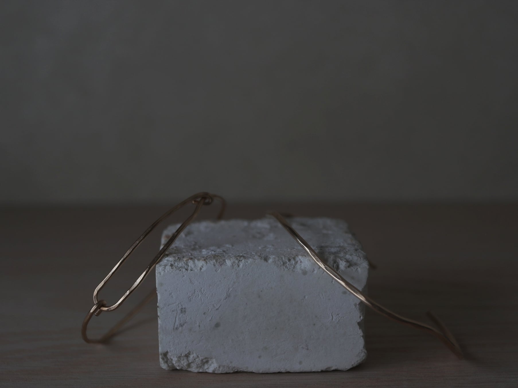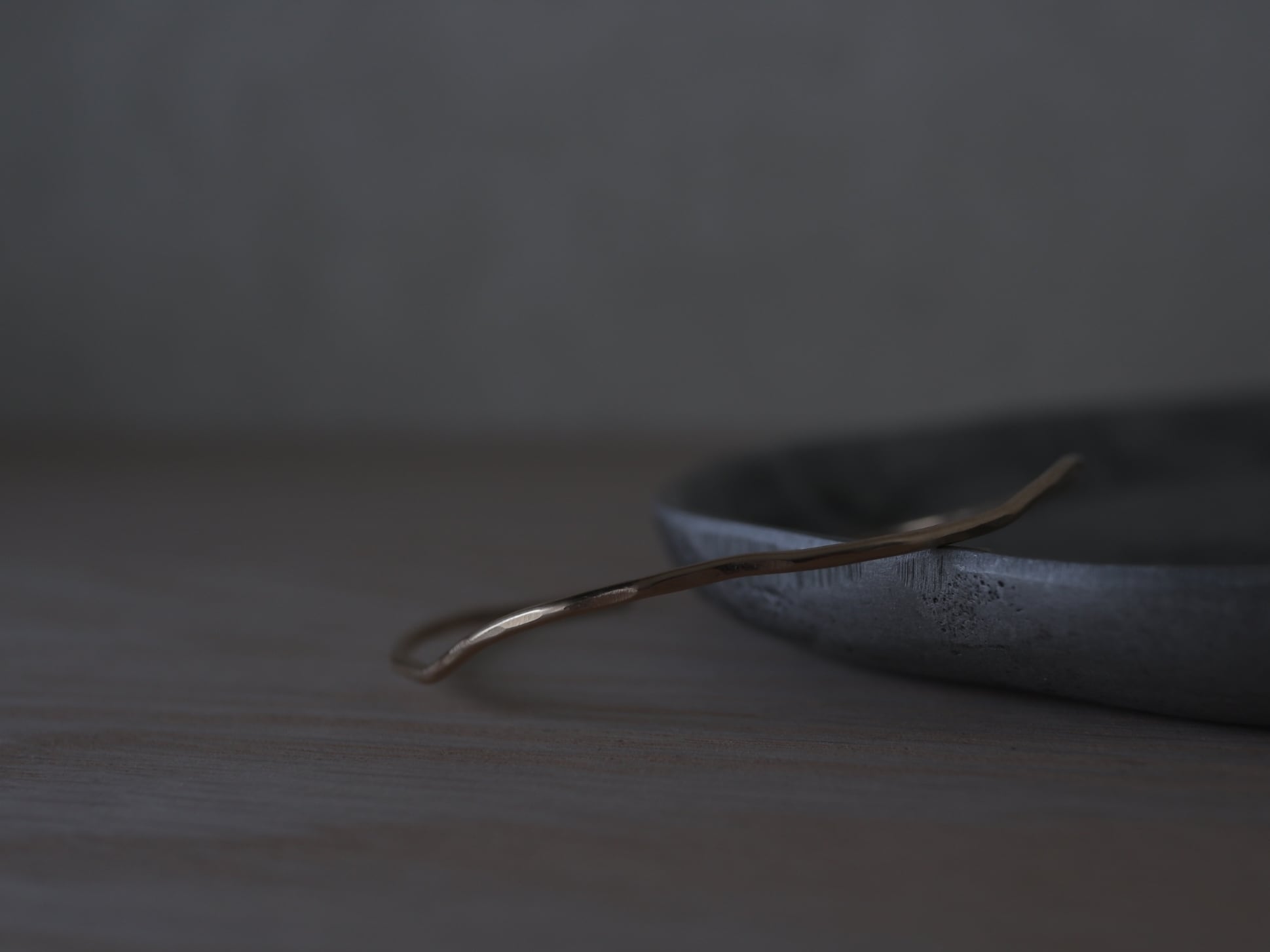 1.6cmほどの華奢な金線に歪みと槌目を施したシンプルなデザインです。