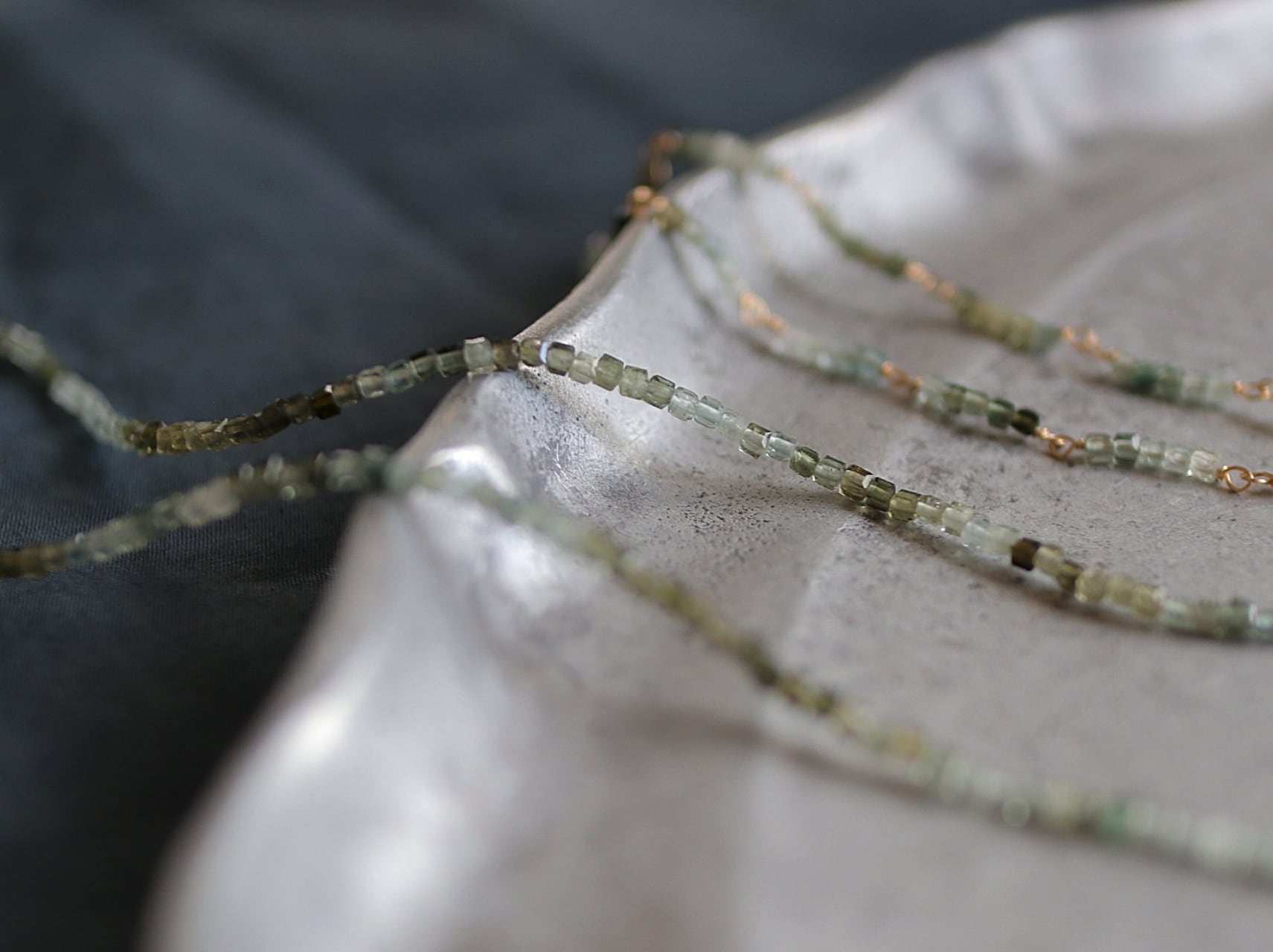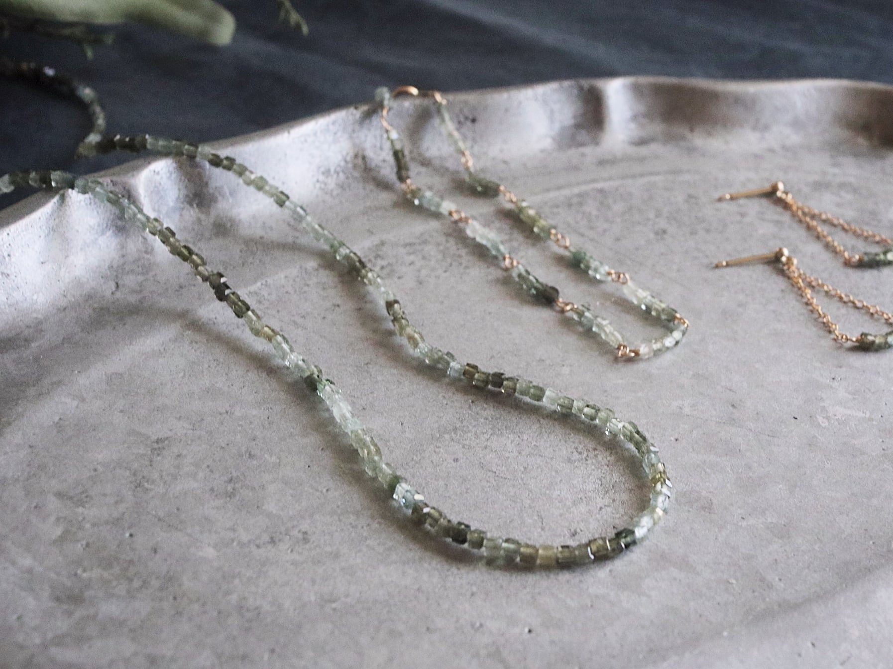 グリーントルマリンの中でも肌に馴染むモスグリーンカラー、そしてグラデーションが美しいものを厳選いたしました。