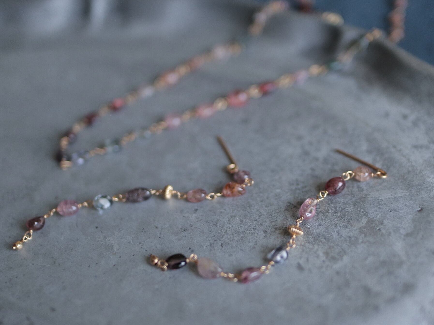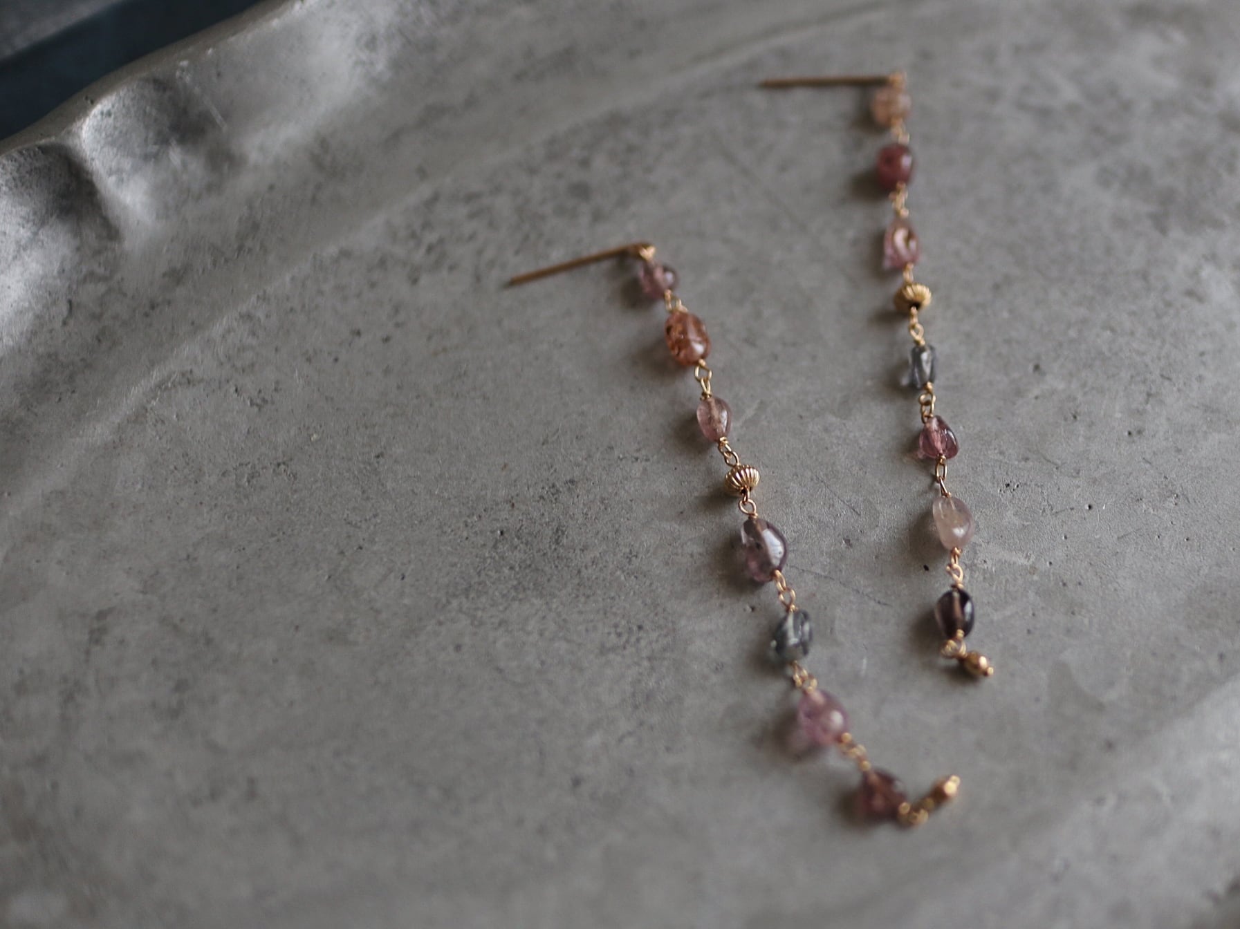 天然石のもつその美しさを存分に楽しんでいただけるよう、存在感のあるロングタイプのピアスにお作りいたしました。