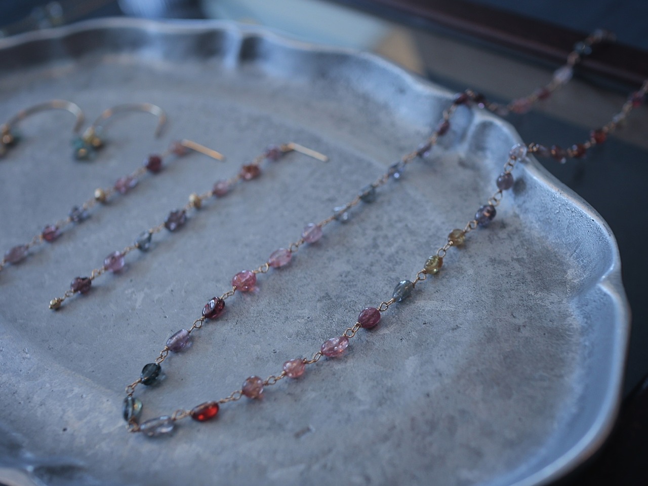 ♢ラフなカットを施し自然の美しさが印象的なマルチカラーのスピネル。一つとして同じもののない色と形が魅力的で、華やかでありながらもどこかシックな印象です。